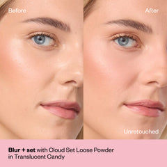 Bake + set with Cloud Set Loose Powder for an airbrushed finish + to lock makeup in place.